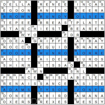 Each of these was clued referencing a person (most of them reasonably famous, but a few obscure), and the grid didn’t feature any surnames outside of the list below: