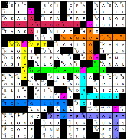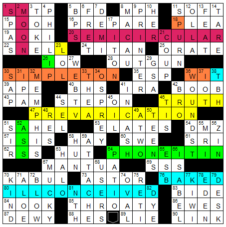 [27a. Brighten] POLISH (rhymes with “abolish”) intersected with 11d. CZECH, whose clue, [West Slavic language], also works for POLISH (rhymes with “trollish”);